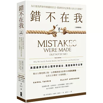 PS.對於想理解人類為何總陷入自欺欺人、自我辯證行為的讀者,本書從醫學、政治、愛情、人際關係等向度,《錯不在我》一書都深入了討論這種現象的變形與原因,値得一讀,非常推薦大家翻閱: