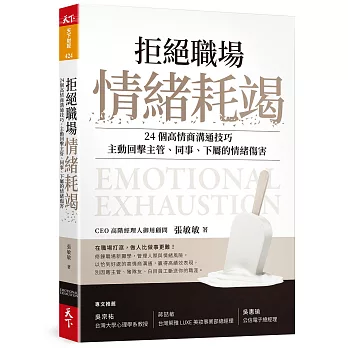 職場情緒耗竭是新興的議題。百大頂級企業CEO御用顧問張敏敏,累積在台灣本土廠商、法商、美商、日商等擔任管理職的經驗,在這本書中根據最常引發的三類情緒問題來源:上司、同事、下屬,揉合學術、實務,提供24個職場應對技巧,有步驟、有方法,甚至有話術,明確地幫助你應付在「向上溝通」、「同儕互動」、「向下管理」容易糾結的種種狀況。